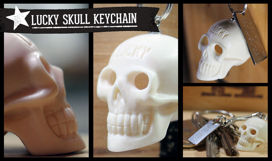 Lucky Skull Keychain: The Lucky Skull is individually molded with liquid urethane that produces a unique texture and durability. Each one requires many steps to produce this final miniature piece of sculptued art.