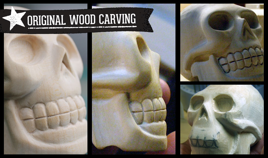 Original Wood Carving: It took many attempts to carve the style of skull we were looking for. The challenge was finding the right balance of realism and style that was attractive and appealing to our message.