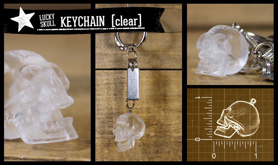 Crystal Skull Keychain: The clear version is our own version of the "crystal skulls" and it has also turned out to be a very popular item.